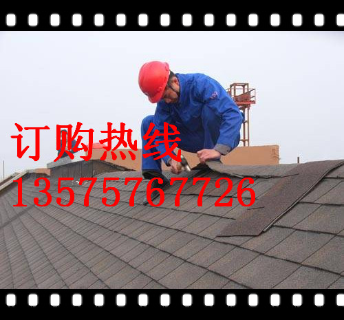 phalt: weathering grade asphalt 载体:玻璃纤维增强胎基。 frame: special fiberglass met 钉数:4只/每片。 Nails: 4 nails/ shingle 特点:自带背粘胶。 Advantage: wholly self-adhesive strips 单层瓦即为每张沥青瓦由一个单层构成,外露部分由两条分瓦线形成三片式,单片内的色调及深浅变化使屋面显现出阴影的效果,由于色彩斑斓兼具自然时尚,其美丽的而丰富的颜色可以匹配任何环境下的别墅、度假村、排屋、园林景观改造等10°以上的坡屋面。 Single tile for each asphalt tile consists of a single layer, exposed portion formed by two points, line three panel,Fire-new construction style Specail impressions and colors form lots of construction styles different from the ones made from traditional roofing material. Its performances of tradition and modern can fully practice the designers’ ideas, and the more complicated the sculpt of roofing is, the more special characteristics of art ROOFING shingles make.Single tile are suitable for villas, resort, terrace, garden landscape renovati联系电话13575767726on, etc. (the slope is more than 10degrees). 技术数据: Technical data 长宽:长1000±3mm宽333±3mm。 Size: 1000*333mm 重量:约9kg/㎡。 Weight: about9kg/㎡. 沥青:特殊复合。 Asphalt: weathering grade asphalt 载体:玻璃纤维增强胎基。 frame: special fiberglass met 钉数:4只/每片。 Nails: 4 nails/ shingle 特点:自带自粘胶条。 Advantage: self-adhesive strips 歌德型瓦以突破常规的设计理念,实现无穷变幻的完美造型,错落搭接的瓦型增强了屋面层次的颜色和动感,瓦与瓦之间参差交错,格调高雅,弹拔出强烈的立体感和视觉冲击效果,让您的生活充满个性的艺术美感。适用于排屋、商业式建筑、幼儿园、公共设施工配套等10°以上的坡屋面。 Gothic is a geometrical shape. It is the perfect answer if you are looking for an original roof with a great aesthetical value. Gothic shingles enhance the color and dynamic of the roofs with original design and different installations, and bring us strong visual shock and individual art enjoyment. 技术数据: Technical data 长宽:长1000mm 宽333mm。 Size: 1000*333mm 重量:约8kg/㎡。 Weight: about8kg/㎡. 沥青:特殊复合。 Asphalt: weathering grade asphalt 载体:玻璃纤维增强胎基。 frame: special fiberglass met 钉数:4只/每片。 Nails: 4 nails/ shingle 特点:自带背粘胶。 Advantage: self-adhesive strips 联系电话13575767726*您的姓名: