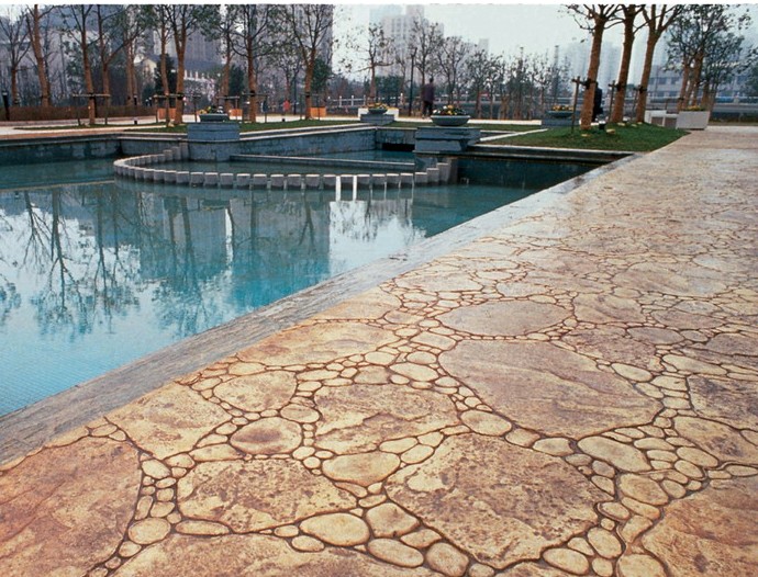 彩色压印地坪是一种防水、防滑、防腐的绿色环保地面装饰材料,是在未干的水泥地面上加上一层压花地坪(装饰混凝土),然后用专用的模具在水泥地面上压制而成。压花地坪能使水泥地面永久地呈现各种色泽、图案、质感,逼真地模拟自然的材质和纹理,随心所欲地勾划各类图案,而且愈久弥新,使人们轻松地实现建筑物与人文环境,自然环境和谐相处,融为一体的理想。