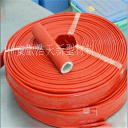 缠绕式高温防火套管采用高纯度无碱玻璃纤维编制成管,再在管外壁涂覆有机硅胶经硫化处理而成。硫化后可在-60℃-260℃温度范围内长期使用并保持其柔软弹性性能。用于阀门,弯曲管道等不规则被保护物的高温防护,缠绕方便,也适用于户外高温管道,如天然气管道,暖气管道等,起到保温隔热作用,减少热量损失。