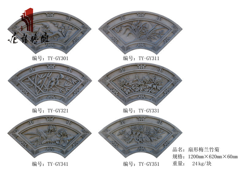 品名:唐语砖雕扇形梅兰竹菊TY-GY301