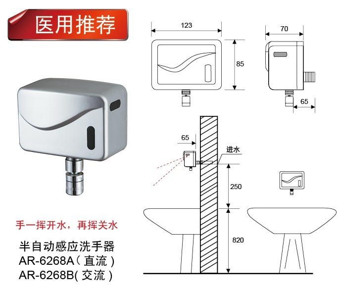 产品名称: 半自动感应洗手器 (特别适合医院手术室,和家庭厨房使用)