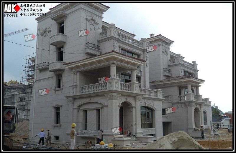 我们石材厂在惠安从事别墅外墙石材加工多年,累积了丰富的工艺水平和一支专业的别墅幕墙石材干挂管理团队。从1998年成立以来,我们不断致力于石雕工艺方面的研究和创新,特别擅长于惠安传统石雕古建的设计、雕刻以及现代高档欧式建筑建材,如花岗岩别墅幕墙干挂、大理石外墙以及砂岩幕墙石材设计、制作、生产、干挂工程安装。 “室无石不雅、园无石不秀”,干挂石材是建筑外墙的一种施工工艺,该工艺是利用耐腐蚀的螺栓和耐腐蚀的柔性连接件,将大理石、花岗石等饰面石材直接挂在建筑结构的外表面,石材与结构之间留出 40~50mm 的空腔。用此工艺做成的饰面,在风力和地震力的作用下允许产生适量的变位,以吸收部分风力和地震力,而不致出现裂纹和脱落。当风力地震力消失后,石材也随结构而复位。石材干挂法又名空挂法。是当代饰面饰材装修中一种新型的施工工艺。该方法以金属挂件将饰面石材直接吊挂于墙面或空挂于钢架之上,不需再灌浆粘贴。其原理是在主体结构上设主要受力点,通过金属挂件将石材固定在建筑物上,形成石材装饰幕墙。