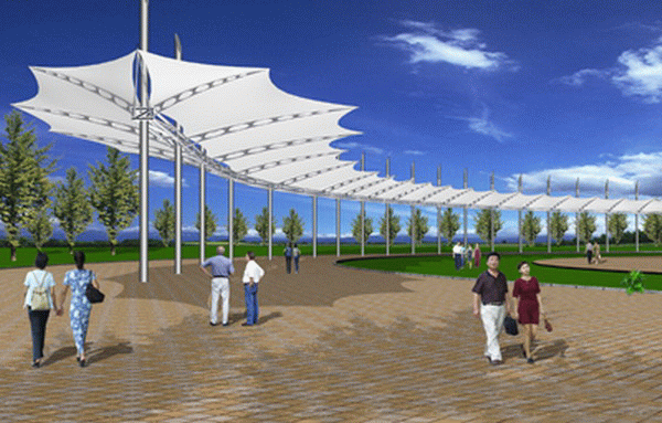 膜结构在中国也不乏工程实例,其中规模最大、最具影响力的膜结构要数1997年竣工的上海八万人体育场看台罩棚张拉膜结构工程。但该膜结构为美国Weidlinger公司设计制作,由此也可以看出中国在该领域与国外先进国家的差距很大。影响中国膜结构广泛应用的主要因素有:国产膜材料性能差,而进口膜材料价格高;尚无商业性的膜结构计算南辅助设计系统;人们对膜结构缺乏足够的认识等。