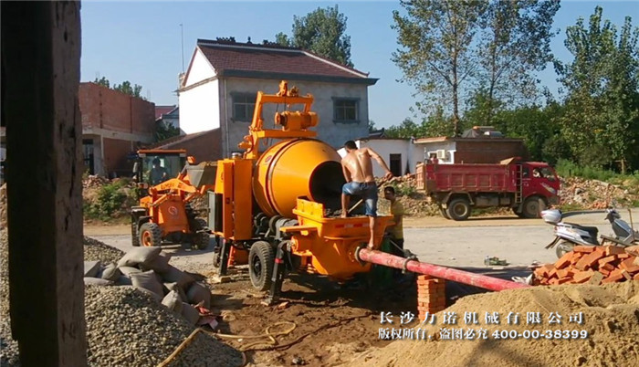 长沙力诺混凝土泵集上料、搅拌、泵送功能于一体,是一款新农村建设的专用机械混凝土浇筑设备。