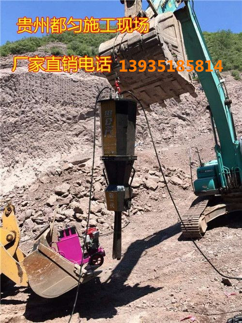 超大型分裂机也叫机载劈裂机,需要打孔直径110毫米。深度1.6米。插入分裂枪即可胀裂,将大块的岩石撕裂,再配合钩机效率惊人,增加三到五倍。超大型岩石劈裂机适合大方量的石渣开采,或者房产地基开采,破土石方等大型工程,满足开采量的需求。