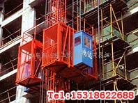 有单笼和双笼的施工升降机:单笼的升降机如增加一个吊笼和其他零件后即可成为双笼升降机。