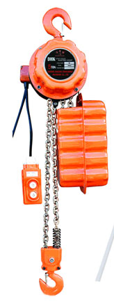 DHK环链电动葫芦广泛用于工厂,矿山,码头,仓库作起吊重物之用,亦可与行车配套组成空间运输系统,是一种改善劳动条件,提高劳动效率的新型产品。