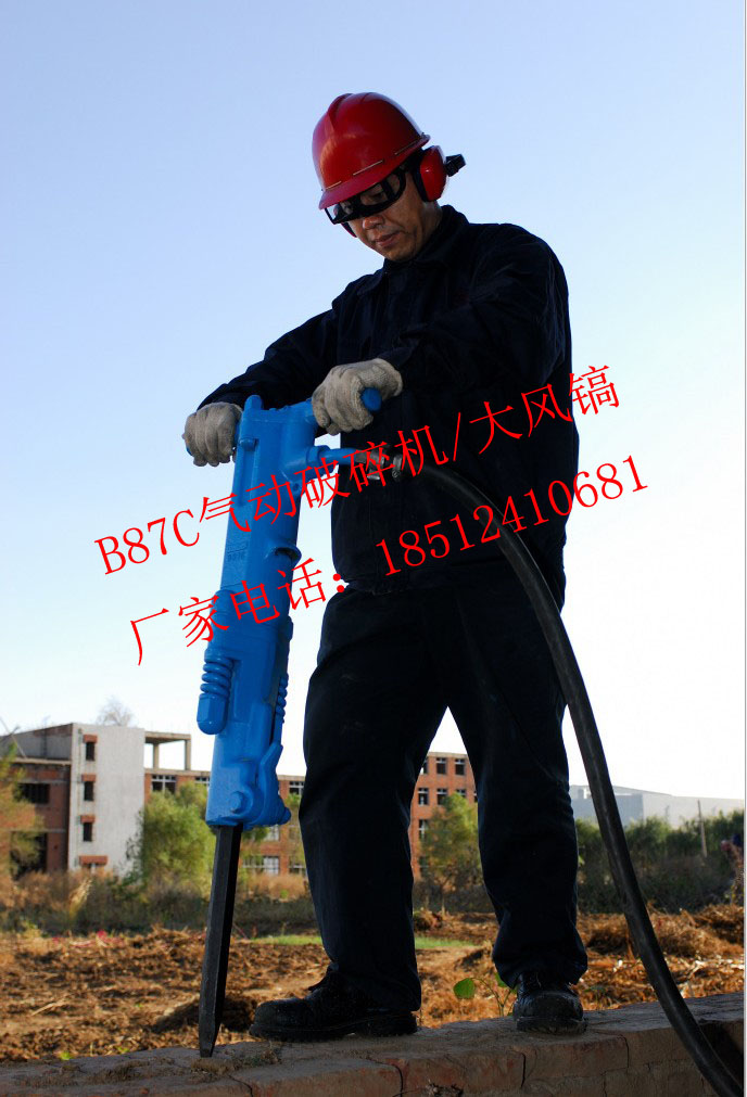B87C型气动破碎机是以压缩空气为动力的工具,压缩空气由阀轮流分配到缸体的两端,使锤提进行往复运动通过垫锤冲击钢钎尾部,将钢钎凿入混凝土层中,使其分裂成块. 经久耐用,性能优良,操作简单,是破碎工具中的经典型产品。输出功率高于同级别产品,并可破碎不同硬度范围的介质,使用范围广。各个部件精密工艺设计,备件使用寿命高。产品依靠机身自重可克服80%反弹力,操作舒适。
