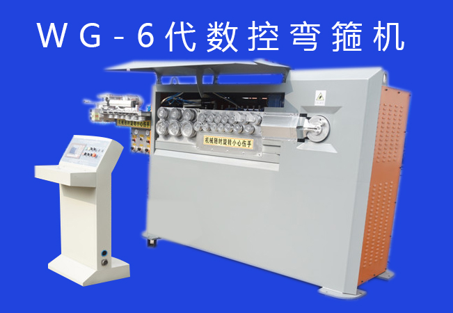 ★WG-6代国内适用型全自动数控钢筋弯箍机全部采用日本(PLC)控制及进口伺服(CNC)电机驱动,自动完成钢筋定尺、调直、切断、弯箍,快速、省人、省料、省地;