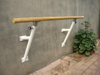 石家庄墙面固定式舞蹈把杆厂家生产的舞蹈把杆可分为移动式、固定式、墙壁式、落地式等,墙面固定壁挂式舞蹈压腿杆尺寸:可直接斜插,有固定法兰用膨胀螺丝固定与墙面,内芯上将幅度35cm,最低点离墙面尺寸30cm,把杆升的越高 杆离墙面越远,把杆直经尺寸为5.5厘米,水曲柳材质,内有2.2cm直径尺寸锰钢,长度也可根据客户要求定做。