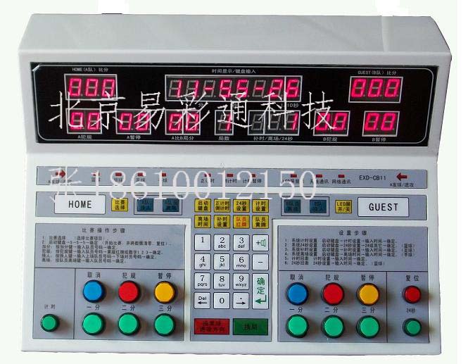 体育馆计时记分设备是用于各类室内、室外体育比赛场馆所举办的各种球类比赛中使用的一套便携式“计时记分系统”。体育馆计时记分设备由便携式操作平台和其它附件构成。通过比赛指定裁判或指定工作人员的现场操作,控制比赛节奏和统计比赛数据,并通过现场显示系统将所操作的结果自动显示出来,同时通过后台计算机完成部分数据的统计。具有: