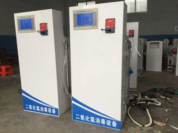 二氧化氯发生装置是一个安全可靠的自动闭环系统,化学药剂的反应过程完全是在封闭的反应器中进行,而加药过程又是在封闭的混合器中完成,从而使系统避免了泄漏的可能。整个系统配有一个可以保证精确、安全投药量的流量监视器,同时也可检测旁路中的水流量。化学药桶配备一套浮子开关,当药品不足时能够及时发出报警信号。系统中还备有通风管路和残液排出管路,保证其安全可靠运行。