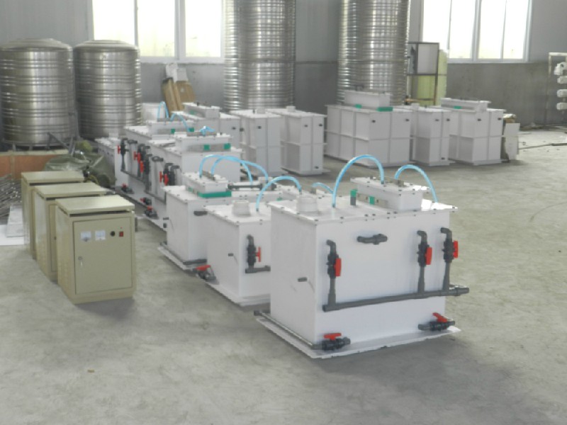 临夏回族二氧化氯消毒设备价格 临夏回族二氧化氯消毒设备价格 二氧化氯发生器的产品组成; 发生器由供料系统、反应系统、控制系统、吸收系统、安全系统组成,整体为新型耐高温,耐腐蚀强度材质。 二氧化氯发生器的应用行业 自来水厂、医院污水、游泳池、发电厂、化工厂、制药厂、炼油厂等行业冷却循环水的杀菌灭澡处理;回用中水的灭菌及除异味;高层二次供水的消毒处理;企业、矿山、部队、农村、铁路沿线以及野外作业的生活用水消毒处理。 性能特点: □生产二氧化氯为主、复合消毒剂。 □原料输送采用优质进口电磁隔膜计量泵,运行稳定,计量准确。 □设备内部的主机反应釜采用耐高温、耐腐蚀的进口复合材料,原料总转化率高,能耗低。 □增加相应设备装置,与恒压供水等水处理工程实现联动。 □控制系统采用单片机智能控制器,数码管显示,触摸键操作。 □根据客户需求可选配缺料报警等故障自动停机保护功能, □可接收余氯、流量信号自动控制投加量,实现全自动控制。预留RS485接口,实现设备工作状态输出及远程控制。 □本系列产品适用于常压、投加管道长度小于50米条件下的水处理场所。 二氧化氯发生器基本要求: 1、发生器的设计及电器设计应符合GB/T 4064 和GB 5083或相应的国际标准和国际组织认可的标准要求。 2、发生器采用的PVC材料应符合GB 4219和QB/T 3802-1999或相应的国际标准和国际组织认可的标准要求。 3、发生器的制造应符合JB 2932或相应的国际标准和国际组织认可的标准的规定。 4、发生器的反应系统应设置安全防爆装置。 5、各管道应无泄漏现象。 6、原料液输送应有连动装置。 7、发生器运行时所用原料盐酸、氯酸钠应符合相应国家标准的规定。 二氧化氯发生器技术要求: 1、二氧化氯消毒剂发生器 a) 发生器的二氧化氯产量应不低于额定值; b) 发生器产生的消毒剂溶液中,二氧化氯(以有效氯计)占总有效氯的质量百分数不小于95%; c) 主要原料如亚氯酸钠的转化率不低于80%。 2、二氧化氯复合消毒剂发生器 a) 发生器的有效氯产量应不低于额定值; b) 发生器产生的消毒剂溶液中,二氧化氯(以有效氯计)占总有效氯的质量百分数不小于55%; c) 主要原料如氯酸钠、亚氯酸钠的转化率不低于60%。 3、在正常工况下,发生器的使用寿命不小于5 年,平均无故障工作时间不少于8000h。 4、发生器在正常工况下应具备良好的密封性,发生器在室内使用时(具备良好的通风条件,环境温度以5℃~40℃为宜),室内环境中氯气浓度应符合HJ/T 30的规定,其最高允许浓度应小于1mg/m。 5、用于饮用水时,消毒后水中的亚氯酸根、氯酸根等原料残留物的总量应不大于0.7mg/L。 执行标准: 1、产品标准 《化学法二氧化氯消毒剂发生器》HJ/T272-2006 《化学法复合二氧化氯发生器》GB/T 20621-2006 2、工程标准 《建筑给水排水及采暖工程施工质量验收规范》GB50242-2002 3、相关标准图 02SS104《二次供水消毒设备选用与安装》 施工、安装要点: 1、发生器与配电装置宜分室放置。 2、发生器产生的氢气应排出室外,其关口应远离火源,操作间照明用安全防爆灯,室内应具有良好的通风设施。 3、发生器有进水口接口,出消毒液接口,外接管路直径应与之一致,消毒液口需装一止回阀。 4、进水管路可用铁管或塑料管,出药管路须用聚氯乙烯或ABS塑料管。 5、发生器旁应有给水排水设施。 6、注意设备接地保护等问题。 一、使用前的准备 1、原料的配制与添加 将氯酸钠与水按1:2(重量比)比例混合,例如1公斤氯酸钠加2公斤水,搅拌至氯酸钠完全溶解即可(氯酸钠为工业氯酸钠纯度为99%-99.5%)。 2、盐酸的添加 关闭氯酸钠箱进水阀、二氧化氯出药阀、盐酸箱放空阀。打开盐酸箱吸真空阀,打开原水进水阀, 同时关闭排放口阀三分之二,打开原料进口阀,然后在盐酸箱吸酸口加一段软管插入盐酸药桶即可。(此过程采用负压原理将盐酸吸入到盐酸箱中)。同时观察盐酸箱液位有否进料,此过程一般需要5-10分种。盐酸加满后关闭盐酸箱吸真空阀,同时关闭原料进口阀。此工作过程就结束。 注意:动力水压必须达到0.25MPa以上,否则无法产生负压,且水质必须干净,否则容易堵塞水射器。 3、将低压控制器压力控制在0.2MPa左右(具体方法,将低压控制器顶部左侧螺丝,逆时针旋转,使正面左侧压力标志到底部,然后调节顶部右侧螺丝,使正面右侧压力表标志在0.2MPa即可)。 二、详细操作说明 1、把本体设备管道正确连接安装好。 2、将氯酸钠水溶液与盐酸溶液配置于溶液箱内,打开原水进水阀,启动微电脑控制仪,把温度设置在40-55度之间(温度设置本公司在出厂前已调整好。具体详见电器说明书,) 3、打开原水进水阀,打开二氧化氯出药阀, 关闭盐酸箱吸真空阀。 同时启动氯酸钠和盐酸计量泵,根据出药量调动计量泵工作频率。 4、把微电脑控制仪设置在自动运行即可(详见电器说明书)。 5、关机时应提前一小时关闭计量泵,停止加料,使水射器将设备中的气体尽量抽完,以防止滞后所产生的气体外溢,停料1小时后关闭原水进水阀。 1. 二化氯发生器 1.1二氧化氯的性质和制备 二氧化氯是氯的氧化物,具有与氯气类似的刺激性气味,分子式ClO2,分子量67.457,熔点-59°C,沸点11°C,在室温下以气体形式存在,为一种黄绿色气体。浓度增加时,颜色变为橙红色,气体二氧化氯极不稳定。二氧化氯易溶于水,在20°