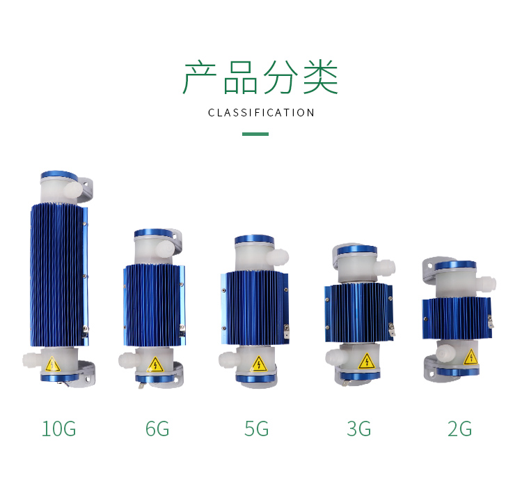 此产品(臭氧管)臭氧产量分别有2g\3g\5g\6g,及分有模块电源、开放电源,臭氧产量不同,电源类型不同、价格不同。