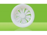工作时利用出风的旋转,将空气以螺旋状送出,产生相当高的诱导比,使送风与周围室内空气迅速混合。与传统的散流器不同,出风槽呈径向排列,风道中的送风经风口出风槽的导向,形成沿切线方向的射流(见图1),整个风口的送风在多股射流的作用下,产生一团如台风状的涡流.涡流的中心区域形成一个负压区,诱导周围室内空气迅速地与送风混合,整个送风气流呈稳定的水平扩散流态。它的诱导比是常规散流器的1O ~20倍