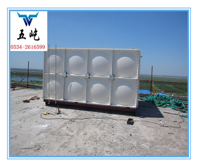 SMC玻璃钢水箱特点: —、选材精良:树脂和玻璃纤维均采用国内著名品牌,保证产品质量。 二、结构独特:用特殊密封条,全螺栓连接结构,组装方便,不会出现漏水及密封不严现象。 三、施工快捷:标准模压板块;随意装配,无须吊装设备。 四、箱体美观:白色外观颜色,给人更舒适的感觉。 五 、重量轻:SMC模压水箱为1:0.1-0.2,所以在设计过程中无须考虑自身重量,因此被称为轻便式水箱。 六、卫生环保:不滋生藻类和红虫,避免二次供水污染,保持水质清洁。 七、 减少清洗:每半年清洗一次即可,大大降低清洗费用
