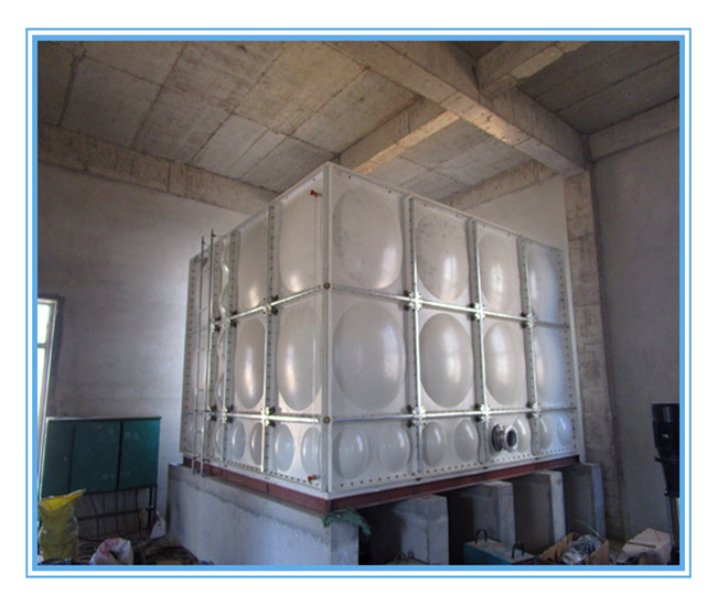 玻璃钢水箱安装说明:a、水箱基础要求 砼基础几何尺寸应按GB02S101有关规定制定。 砼基础平面高低差<5mm b、玻璃钢水箱的安装,施工和验收 专业焊工现场氩弧焊接。施工现场有标准电源。水箱四周有≥500mm的检修空间。外观检验无锈蚀,无污染:注满水2-3h,箱体无明显变形,焊缝无渗漏为合格。 c、水箱的使用、维修和保养 配管时,切勿向配管进出水口施加过大的负荷。 不要将阀门及大口径管道的重量直接施加到水箱水口,必要时设置管道支撑:对焊接管的膨胀、收缩、振动必须装伸缩柔性接头。 冲压玻璃钢板焊接水箱采用玻璃钢钢板冲压出加强筋,并用玻璃钢焊接条整体焊接而成,结构简单,强度好,可制造较大容量的水箱。因箱体采用玻璃钢板整体焊接,彻底遮断了太阳光的照射,所以不会滋生藻类。使水质始终保持清洁