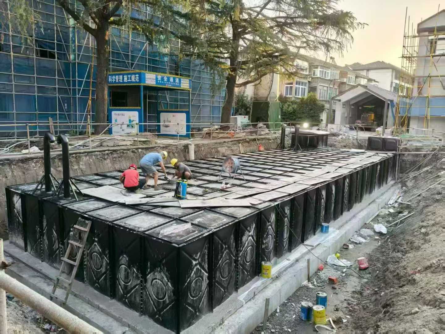 广西埋地式消防一体化给水泵站采用本新型的技术方案,安装便捷,一台普通300m3地埋消防成品水池在2-3天就可以安装完毕,单元水箱模块是由不锈钢材质与混凝土复合预制而成所需规格,其接触水的部分是耐腐蚀不锈钢材质