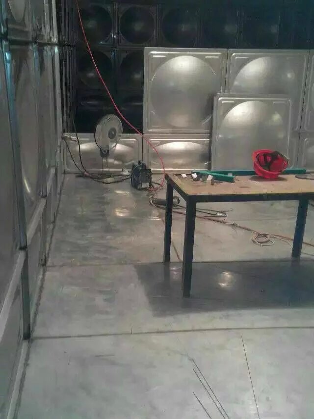 高强度的冲压板块及箱内分布均匀的不锈钢拉筋使箱体增加了六倍强度,并且受力均匀,水箱由单元矩形的薄板和凹凸板拼装焊接而成,安装简便,便于运输,无需大型吊装设备,不同容积均可现场组装。