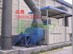 从漆雾净化塔排出的气体进入气液分离器进行气水分离,分离后的气体再进入活性碳吸附净化塔,活性碳净化塔是利用高效吸附材料-活性碳吸附有机气体能力强的优点来净化空气的。活性碳净化塔分进风、活性碳过滤段和出风段组成,有机废气从进风口进入塔体,净化后的达标尾气在通风机吸力下排向大