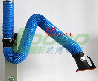 路博LB-JYB柔性吸气臂外皮采用耐酸碱耐140摄氏度高温进口PVC软管,内部构件及罩口托架均采用不锈钢材料,可360度任意悬停,带吸口风量调节阀。