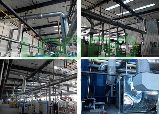 由于橡胶轮胎废气的产生部位比较多,并且分散在车间中,因此在处理废气之前必须先把废气收集起来,所以需要集气系统对其进行收集后统一处理。