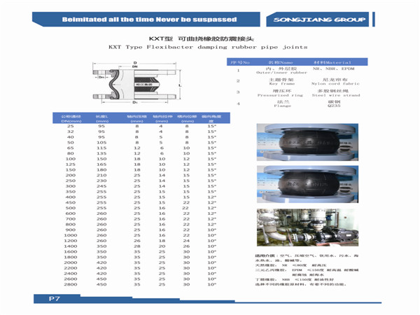 2.您可以根据自己的管道需要选择使用工作压力为:0.25Mpa,1.0Mpa、1.6Mpa、2.5Mpa可曲挠橡胶接头,连接尺寸参照(法兰尺寸表)。