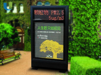 U-CPARK环境监测和显示一体化屏幕(环境空气质量监测显示屏)对监测点的环境和空气卫生质量参数(包括:温度、湿度、噪音和PM2.5等)进行现场在线监测,通过无线或有线的数据传输(GPRS、WIFI或3G)方式发送至管理中心的数据接收平台,并通过各类显示终端(如LED大屏幕)进行实时发布。