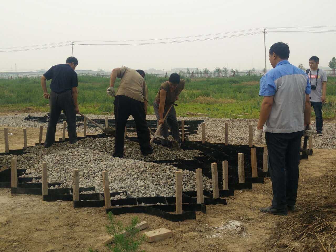 塑料土工格室用于稳固铁路路基:塑料土工格室可以防止碎石及级配横向移动,使整体更坚固,防止抽水,即使地基松软也可防止整个或局部坍方。在交通量大的地区如交叉道、分支道及回转道,可显著增加使用年限。   3、用于承受载重力的堤防、挡墙:界定强化碎石方,形成一致的结构体,可阻挡横向压力,不管地层滑动和凝聚,都可自行调整,可支撑非结构面及自然植生层,可垂直或阶梯式设计。 4、用于浅水河道治理:三面立体方格加强填方的力量,防止水土流失及增加载重力,可以减少浅河道的施工成本并允许过河道的设计符合交通及土质各种条件。   5、塑料土工格室用于支撑管路及下水道:采用土工格室可不必采掘和放置大量的石块作为管床式下水道的支撑结构,利用常规材料,形成一坚固耐久的整体板块结构,对管道提供挠性的永久性的保护,可减少由于长时间造成的微量下沉,使管道的基础更加坚固,并可长期防止局部塌方。该方法施工简便,减少开挖,对于长距离大型运输管道更为经济实用。塑料土工格室