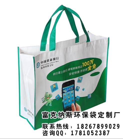 由麻布缝合形成的环保袋是当下流行出门的束口袋。无纺布广告袋色彩惊艳、时尚、环保、好看......用途广泛、大方美观,颜色、图案、款式变化多端,况且质轻环保,价格实惠,应用寿命比纸袋长,质量比塑料袋坚韧,可以反复应用,被大家一致认同为保护地球生态得可以再生环保产品。环保,一份义不容辞的责任,爱护环境,人人有责!大家都立刻行动起来吧!