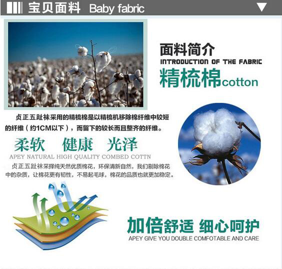 4、穿五指袜可以利用棉的特点将你的脚趾之间的汗水给吸掉,使脚趾间气流畅通,有效地防止脚臭、脚气!