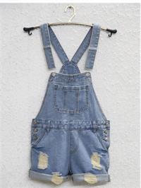 韩版修身学生牛仔背带短裤女夏季潮学院风