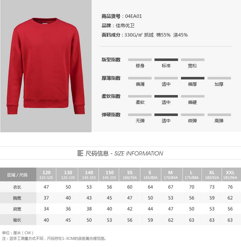 【生产厂家】佳帛优卫 04EA01 330g圆领卫衣 定制