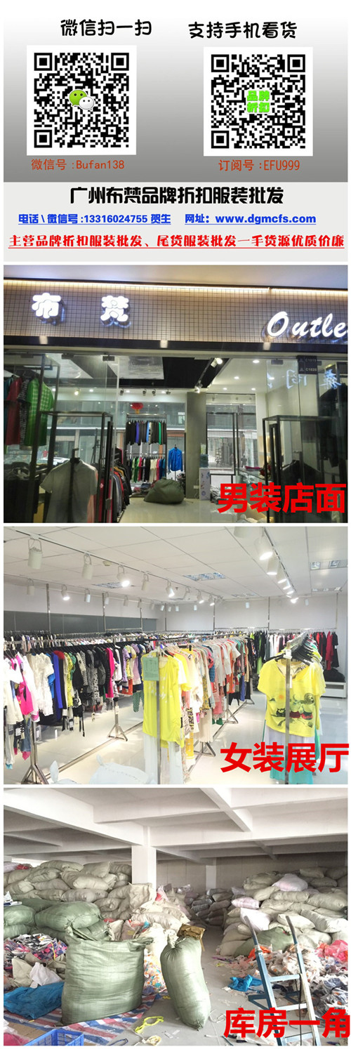 广州布梵依服饰有限公司,专业经营品牌折扣女装,库存尾货女装批发。公司的供应的产品,始终坚持中高端路线,以深圳货,广州货为主导,定位国内外知名的一二线品牌女装,兼容汇聚了海派(上海).杭派(杭州).温派(温州).汉派(武汉).京派(北京)相同层次的服装品牌,且产品涵盖春、夏、秋、冬应时应季女装,时尚、淑女、休闲-云裳霓影,魅力尽显.米潮品牌折扣网和广州服装尾货,是广州布梵依服饰旗下的两个网上批发平台,广州布梵依服饰是一家大型实体公司,公司自有实体展开500多平方,仓库1000平方左右,主要从事于国内外一二线品牌尾货,库存尾货的批发,经过多年的经营积累,已和国办的众多知名品牌女装厂家建立了良好的合作关系,我们的产品,按原吊牌价的0.5-1折供货,超低折扣价,高性价比,想你所想,急你所需。