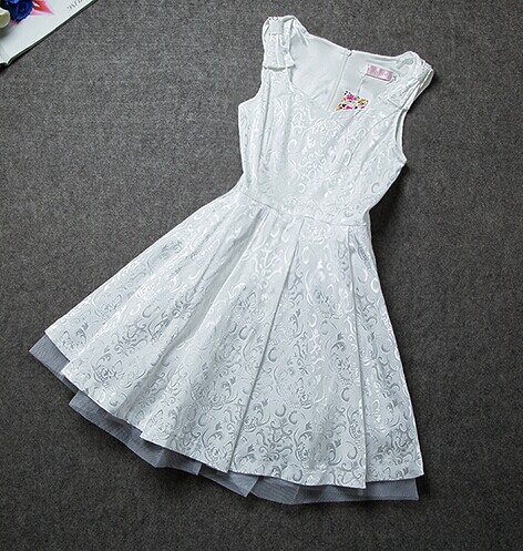 韩版时尚女连衣裙 甜美高腰蝴蝶结收腰显瘦蓬蓬连衣裙
