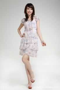 2011春夏新款 圆领 修身 短袖花苞印花连衣裙