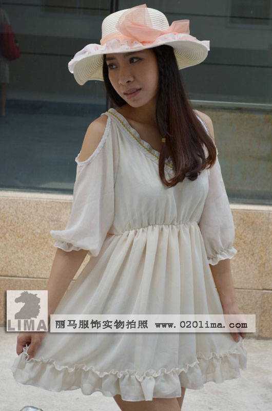 供应柔美雪纺小露肩公主连衣裙优雅脱俗女装批发十三行厂销服装批