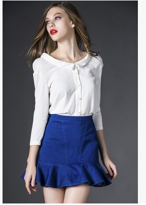 2015夏新款女装 七分袖翻领衬衫+牛仔鱼尾裙半身裙两件套装