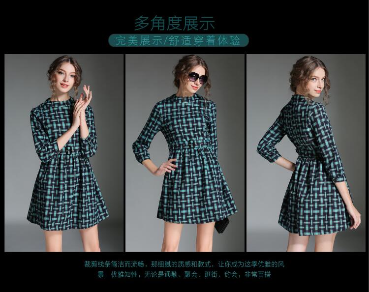 女装新款格子修身长袖时尚名媛公主连衣裙