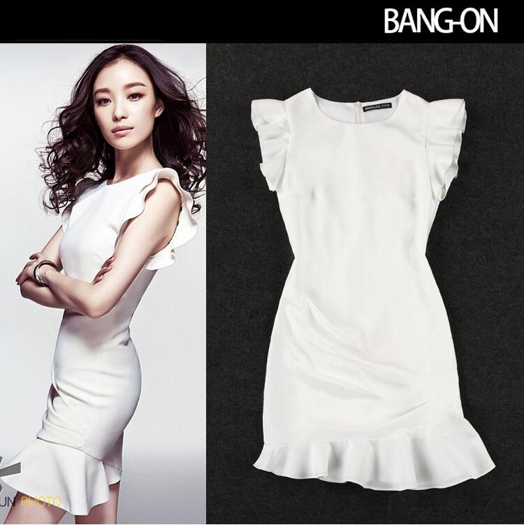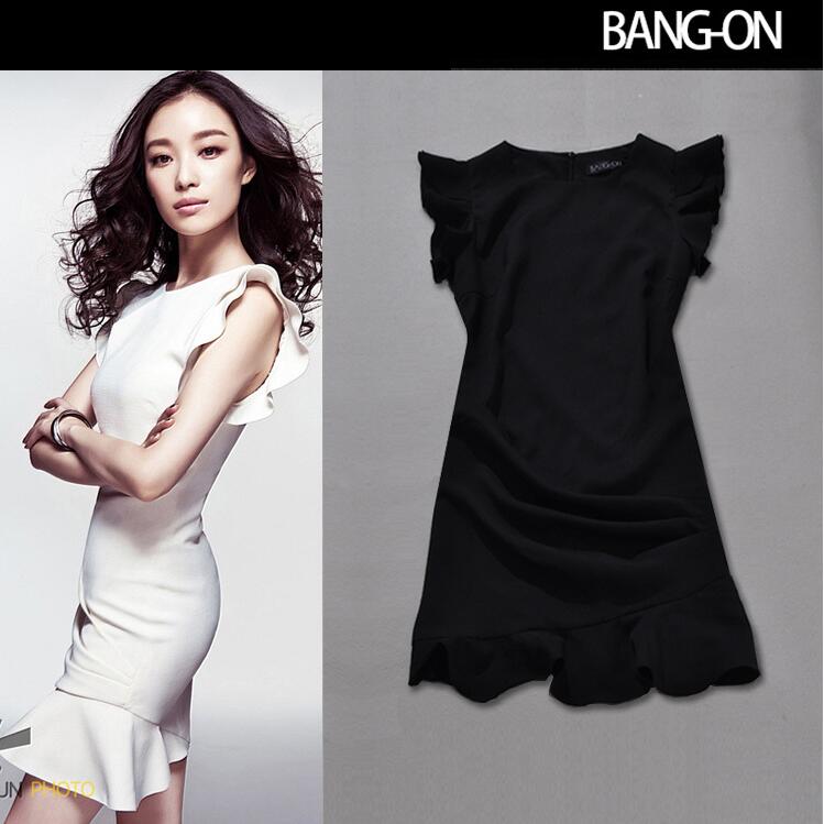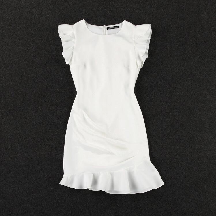 2016夏季女装新款荷叶边时尚修身显瘦包臀短袖连衣裙
