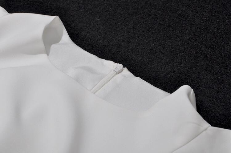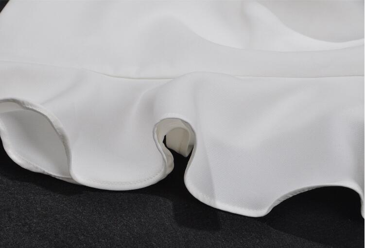 2、肩袖展示:拼接荷叶边设计,廊型优雅大方,层次而赋有动感。