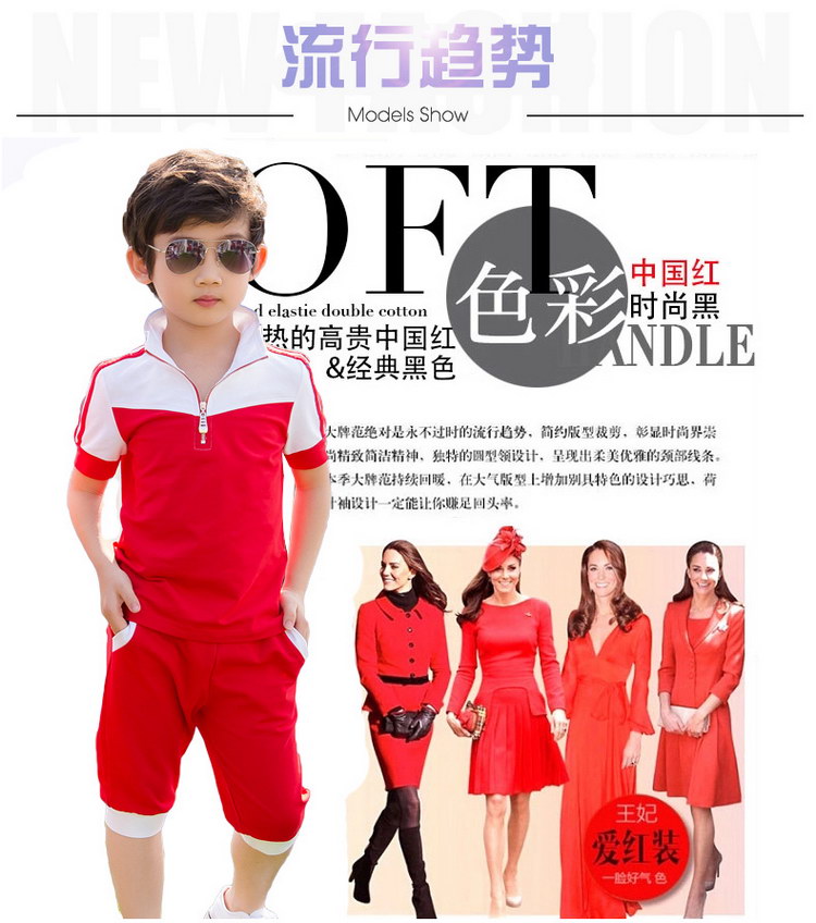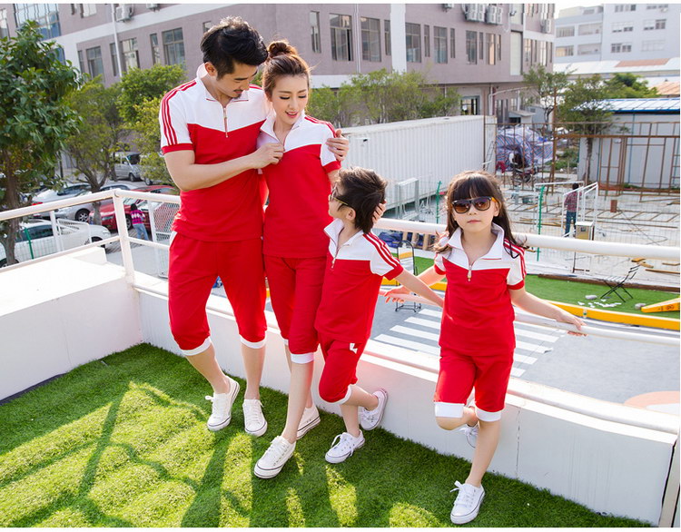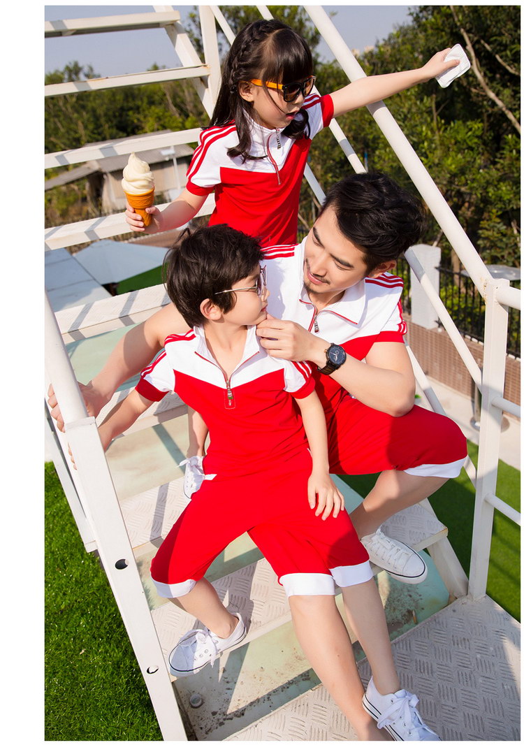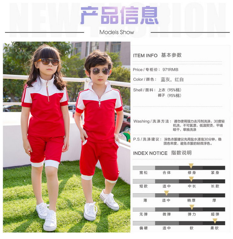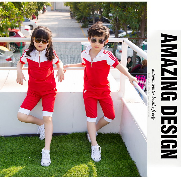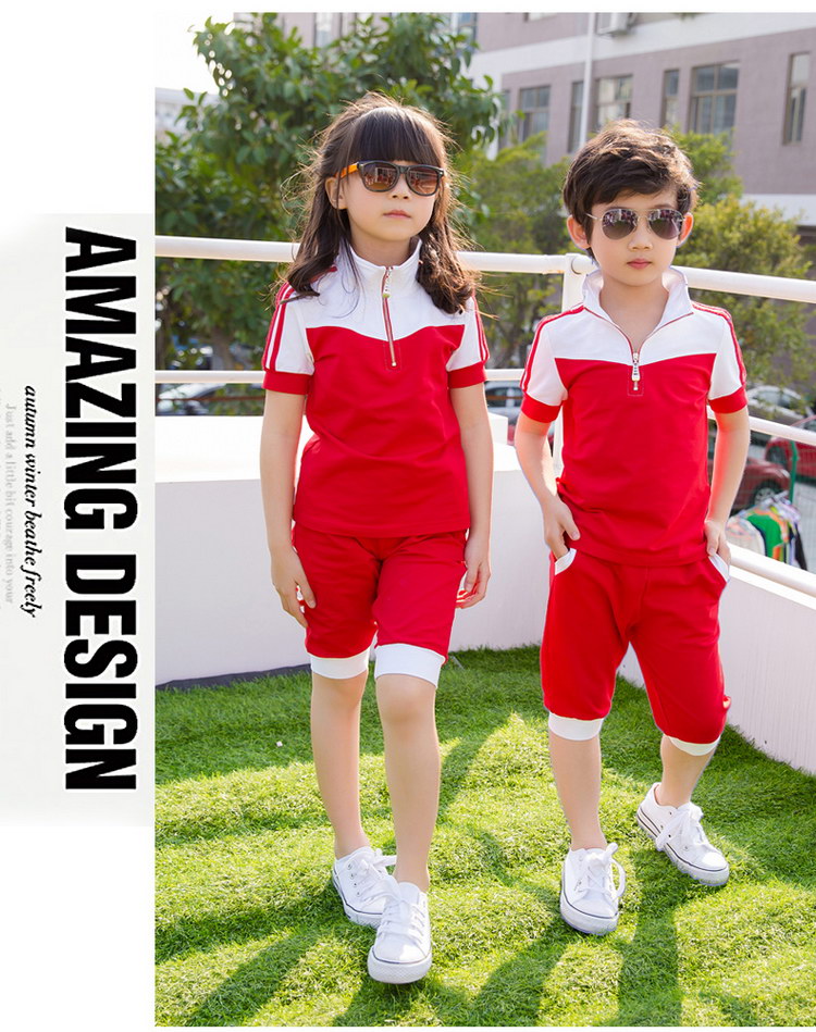 西部元素幼儿园园服夏新款红白色拼接运动休闲套装小学生班服定做