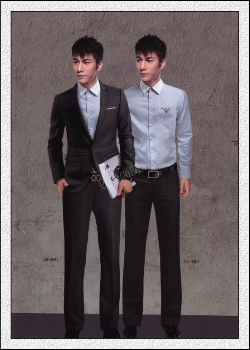 靓丽之约强大的品牌铸就最优秀的服装团队,无论用户何时何地,玖子尚服装都会从设计,面料,款式,颜色,形象,服饰搭配等服装方面的问题,为企业提供优质周到的服务,我们会用高品质的服务和专业团队,为您铸就时尚,靓丽,经典,高贵的职业装。裤子分无褶西裤、单褶西裤和双褶西裤三种类型。双褶款式太过老旧,属于应该被淘汰的款式;单褶西裤适合大腿稍胖的男士穿着,有修身效果;无褶的西裤裤型最佳,适合大多数人穿着。