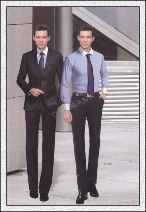 靓丽之约强大的品牌铸就最优秀的服装团队,无论用户何时何地,玖子尚服装都会从设计,面料,款式,颜色,形象,服饰搭配等服装方面的问题,为企业提供优质周到的服务,我们会用高品质的服务和专业团队,为您铸就时尚,靓丽,经典,高贵的职业装。明净型:本身的色调对比很强烈,头发、眼睛色彩很深,皮肤却很白皙。这种男士适合色彩鲜艳、色调丰富的衣服。他们适合单一色或有强烈对比的条纹西装,炭灰色、藏青色、炭棕色以及深橄榄色或深绿色都比较适合。