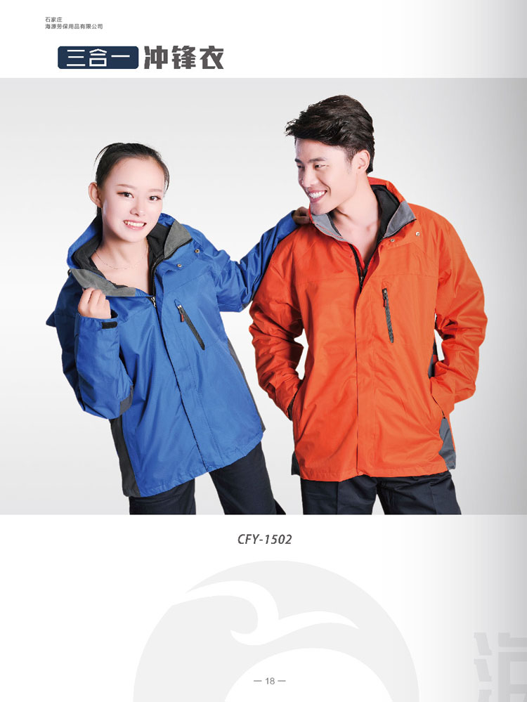 海源劳保服装CFY-1502冲锋衣三合一工作服批发生产