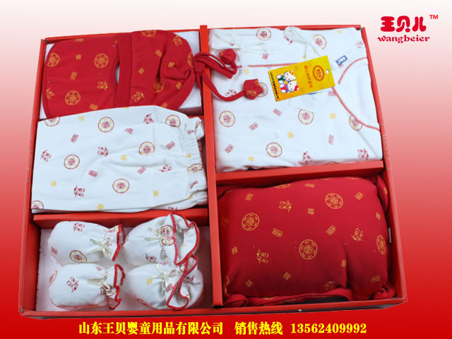 供应王贝儿婴儿装礼盒 中国红七件套