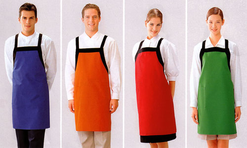 按材料如:PVC围裙 全棉印花围裙 涤棉围裙 无纺布围裙 帆布围裙 全涤围裙等