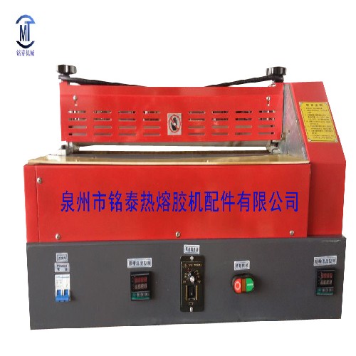 MT604-600A桌式上胶机?泉州市铭泰机械制造有限公司1、MT-600A桌式过胶机是专门为小面积平面材料上胶设计,根据产品的需求和材质的不同上胶,胶量的厚薄均可精确调整。2、上胶的宽度可根据产品的宽度订制,我们生产的常用规格可分为200mm、300mm、400mm、600mm4种标准机型。3、主转动系统采用无段位调速、滚轮、胶槽独立温控、双重温度保护胶桶采用铁氟龙涂层大大降低胶的氧化对产品质量有可靠的保证。4、上胶滚轮可根据用户的需求可订制、平面、网纹、点状、凹槽等形状。?应用范围:过胶机主要应用在:鞋业、纸品、印刷、箱包手袋、家具、泡棉包装材料、无纺布复合等行业。?技术参数:型号MT-603-600A电机功率120W电热功率3500W熔胶速率10公斤/h使用粘度1000~20000?CPS操作温度≤250℃?外形尺寸800mmx380mmx560mm胶桶容量10公斤重 量80公斤