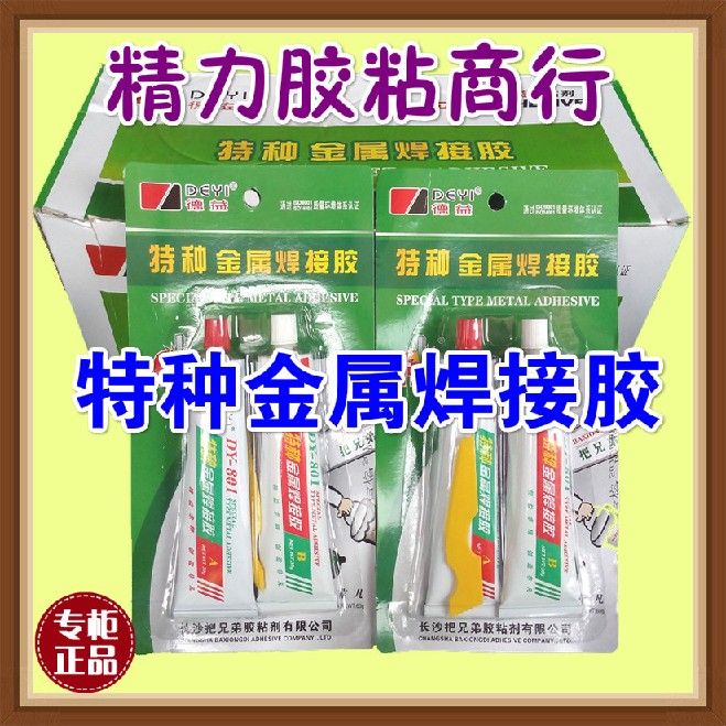 特种金额焊接胶采用先进工艺、技术研制而成。在常温(25℃)下能迅速粘接各种金属材料如钢、铁、铝、钛、不锈钢等,使用方便、具有广泛的适用性,固化胶膜韧性好,抗冲击力及剪切力强、耐侯性佳。于适用于金属制品,工具行业、机电行业、化工管道、汽车水箱油箱的粘接制造及应急修补,效果特佳。