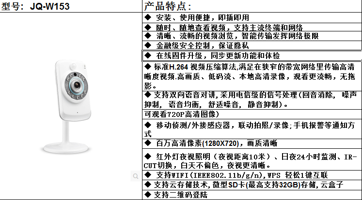 杰球JQ-W153云摄像机手机监控无线摄像头